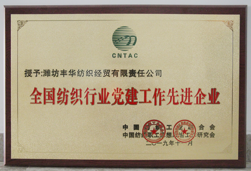 11月8日—10日,中國紡織職工思想政治工作研究會第五次會員大會暨全國紡織行業黨建和誠信文化建設工作交流會在河南西平召開。會上對全國紡織行業黨建和思想政治工作優秀單位、先進個人進行了表彰,豐華(集團)公司獲得“全國紡織行業黨建工作先進企業”和“全國紡織行業思想政治工作先進單位”兩項榮譽。